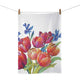Konyhai kéztörlő pamut fehér alapon piros szívecskés.