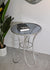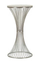Ez az exkluzív kis asztal kortárs és kifinomult megjelenést kölcsönöz bármely enteriőrnek. Az ezüstszínű fém váz ívelt vonalai könnyedséget sugallnak, míg a fényesen csillogó edzett üveglap letisztult, kortárs hatást biztosít. A fém és üveg párosítása világosabbá és tágasabbá teszi a teret, tökéletes választás nappaliba, hálószobába vagy előtérbe dekoratív kiegészítőként.
