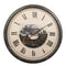 Az óra alsó részén elhelyezett valódi mozgó fogaskerekek különleges ipari karaktert adnak a megjelenésnek, mintha egy régi gépezet működését figyelnénk. A klasszikus római számokkal díszített számlap és a patinás hatású mutatók tovább fokozzák az antik hatást.
