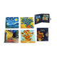 Mozart arcképével és zenei motívumokkal díszített Poháralátét, fém-parafa 4db-os szett, fémdobozban.