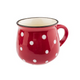 Nosztalgikus kerámia pöttyös bögre, piros alapon fehér pöttyökkel.