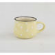 Nosztalgikus hangulatot idéző pöttyös kerámia bögre, világoskék alapon fehér pöttyökkel.