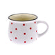Nosztalgikus hangulatot idéző Virág pöttyös kerámia bögre fehér alapon kék pöttyökkel.