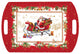 A szalvétán díszeleg az integető Mikulás a szánján, sok színes ajándékdoboz társaságában, valamint különböző karácsonyi motívumok.
