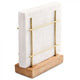 Fekete fém szalvétatartó barna mangófa aljjal.