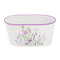 Lila virágos - levendulás ovális bádog kaspó - 23x12x11,5 cm
