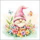 Bájos, virágokkal és pillangókkal körülvett manó mintával díszített tavaszi konyharuha, amely azonnal vidám, tavaszi hangulatot varázsol otthonodba.