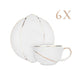 A magas minőségű porcelánból készült 6 személyes teás csésze szett aljjal: különleges domború mintával, csésze aljjal, és aranyszínű szegéllyel, mely elegáns és kecses megjelenést ad a készletnek.