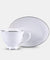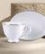 Elegáns és letisztult fehér porcelán csésze ovális aljjal, domború mintával és arany színű peremmel, két személyes készlet, Veroni Dominica.