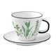 A kiválóminőségű porcelánból készült 2 személyes teás csésze szett aljjal: különleges hullámos szegélyű csészealj, míves díszítéssel, míg a csésze széle enyhén szögletes kialakítású, mely különleges bájt kölcsönöz a szettnek. Pereme arany színű.