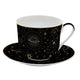 Ez az egyszemélyes karácsonyi teáskészlet tartalmaz egy teáskannát, egy teás csészét és a hozzá tartozó aljat.