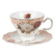 Idézd fel a békebeli hangulatot ezzel a vintage viktoriánus stílusú rózsa mintás porcelán teáscsészével.
