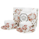 Ez a fekete alapon rózsaszín virágos mintával díszített csésze szett tökéletes választás a romantikus délutáni teázáshoz.