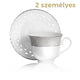 A csészék szélére festett ezüst színű perem eleganciát és bájt kölcsönöz a kollekciónak.