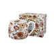 A csészét és a hozzá tartozó aljat is nagy botanikus kertekre emlékeztető virágok díszítik. A teázás elegáns és önfeledt élményét a peremét díszítő arany színű szegély teszi teljessé.