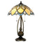 Ez a gyönyörű Tiffany asztali lámpa lenyűgöző bézs, kék üvegelemekkel készült.