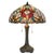 Ez a gyönyörű Tiffany asztali lámpa lenyűgöző piros, kék, rózsaszín árnyalatú üvegelemekkel készült, melyek gyönyörű virág kompozíciót alkotnak.