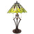 Ez az elegáns Tiffany stílusú asztali lámpa klasszikus dizájnnal és kifinomult megjelenéssel rendelkezik. A lámpa árnyékolója zöld és fehér üvegbetétekből áll, amelyek meleg, otthonos fényt biztosítanak. A kerek talapzat és az ívelt elemek stabilitást és modern eleganciát kölcsönöznek a lámpának. Kiváló választás nappaliba, hálószobába vagy dolgozószobába, ahol egyedi hangulatot teremt.