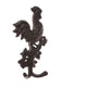 Dekoratív, bájos öntöttvas fali fogas kakasos dekorációval, két akasztóval, barna színben. A rögzítő furat segítségével könnyen a falra szerelhető.