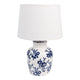 Kerámia asztali papagájos, trópusi mintás lámpa műanyag/textil zöld burával.