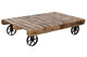 Elegáns, vintage stílusú barna mangófa dohányzóasztal, polccal.
