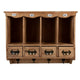Vintage jellegű rusztikus fa falipolc díszes vastartón, 5 fogassal.