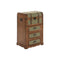z a vászon és fa kombinációjával készült, vintage utazóláda-hatású fiókos szekrény tökéletes választás, ha valami igazán egyedit keresel otthonodba. A bőrhatású szíjazás, szegecsek és a finoman antikolt fém fogantyúk igazi múltidéző karaktert adnak ennek a különleges bútordarabnak.