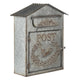 Fém postaláda vintage díszekkel, pillangós, Mail felirattal. Felülete antikolt.
