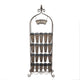 Fém antikolt, koptatott, fehér bicikli virágtartó két kosárral, 58x28x42 cm méretben.