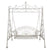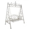Vintage stílusú, antikolt fehér masszív fém kerti kétszemélyes hintaállvány, hintapad.