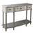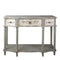 Ez a vintage stílusú, fából készült díszes konzolasztal igényes és dekoratív bútordarab romantikus otthonokba, irodába, váróterembe. Felülete régies hatást keltően erősen antikolt, koptatott, 3 fiókkal rendelkezik.