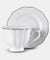 Elegáns és letisztult fehér porcelán csésze aljjal, domború mintával és arany színű peremmel, hat személyes készlet, Veroni Anet.