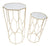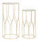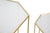 Stílusos és kortárs hatszögletű kisasztal szett aranyszínű fém vázzal, amelyet egyedi geometrikus vonalak és finoman kidolgozott üveglap tesz különlegessé. Könnyed, légies kialakítása mégis exkluzív és karakteres kiegészítővé varázsolja a nappalit, hálót vagy az előszobát. Praktikus és dekoratív választás minden enteriőrbe.