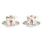 Joyful Santa karácsonyi porcelán eszpresszó csésze aljjal, 2 személyes szett. A csészéket vidám, mókázó télapó és karácsonyi motívumok díszítik, háttérben havas erdei tájjal.