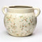 Kerámia kaspó füllel krém zöld antikolt virág mintával 31x25x21 cm.
