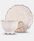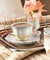 Elegáns, rusztikus krém színű porcelán csésze domború és áttört mintás csésze aljjal, arany színű peremmel, hat személyes készlet, Veroni Charlotte.