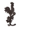 Dekoratív, bájos öntöttvas fali fogas kakasos dekorációval, két akasztóval, barna színben. A rögzítő furat segítségével könnyen a falra szerelhető.