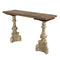 Ez a Shabby chic, vintage stílusú, fából készült díszes konzolasztal különleges és dekoratív bútordarab romantikus otthonokba, irodába, váróterembe. Felülete régies hatást keltően erősen antikolt, koptatott. Lábazata díszes, faragott.